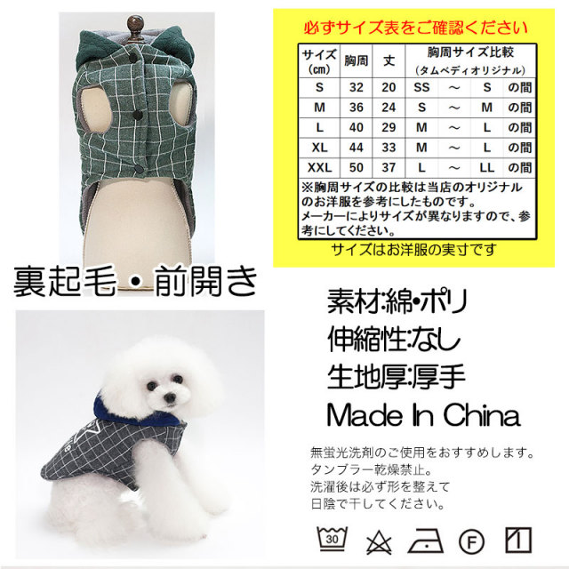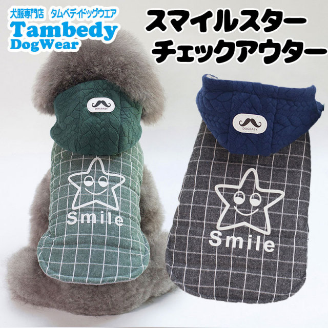 スマイルスターチェックアウター 裏起毛前開き 【犬服専門店タムベディ】